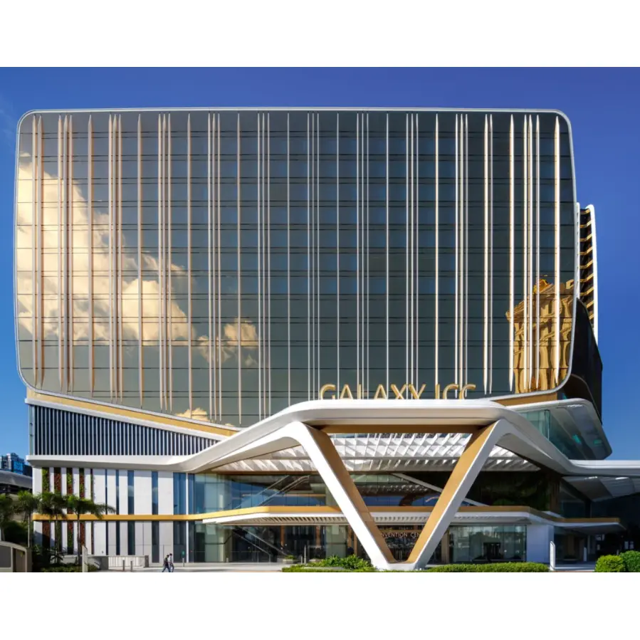 Sinusuportahan ng Irregular Shaped Aluminum Single Panels ang kumplikadong curved surface processing, kabilang ang single-curved at double-curved surface, na nagbibigay-daan sa paglikha ng mga visually striking facades ng gusali. Maaari ding i-customize ang mga ito para sa hindi regular na hugis ng mga interior curtain wall, na umaangkop sa mga high-ceilinged lobbies, mga disenyo ng atrium, elevator hall, at iba pang interior space, binabalanse ang architectural functionality na may aesthetic na disenyo at paglabag sa mga limitasyon ng tradisyonal na planar curtain wall.